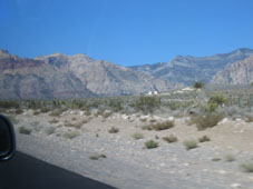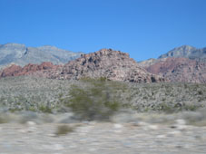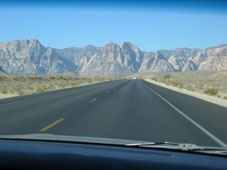 そして、遥かかなたに見えてきた山は一部分だけ赤いのがわかる。どうやらあれがレッドロックキャニオンらしい。
